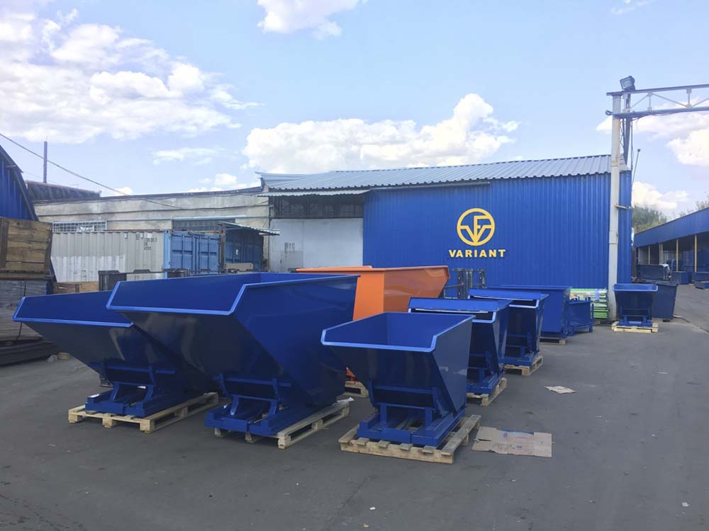 Mindenféle áru/hulladék tárolására, targoncával emelhető, automatikusan vagy manuálisan üríthető, 300 - 2500 literes űrtartalmú tárolók.